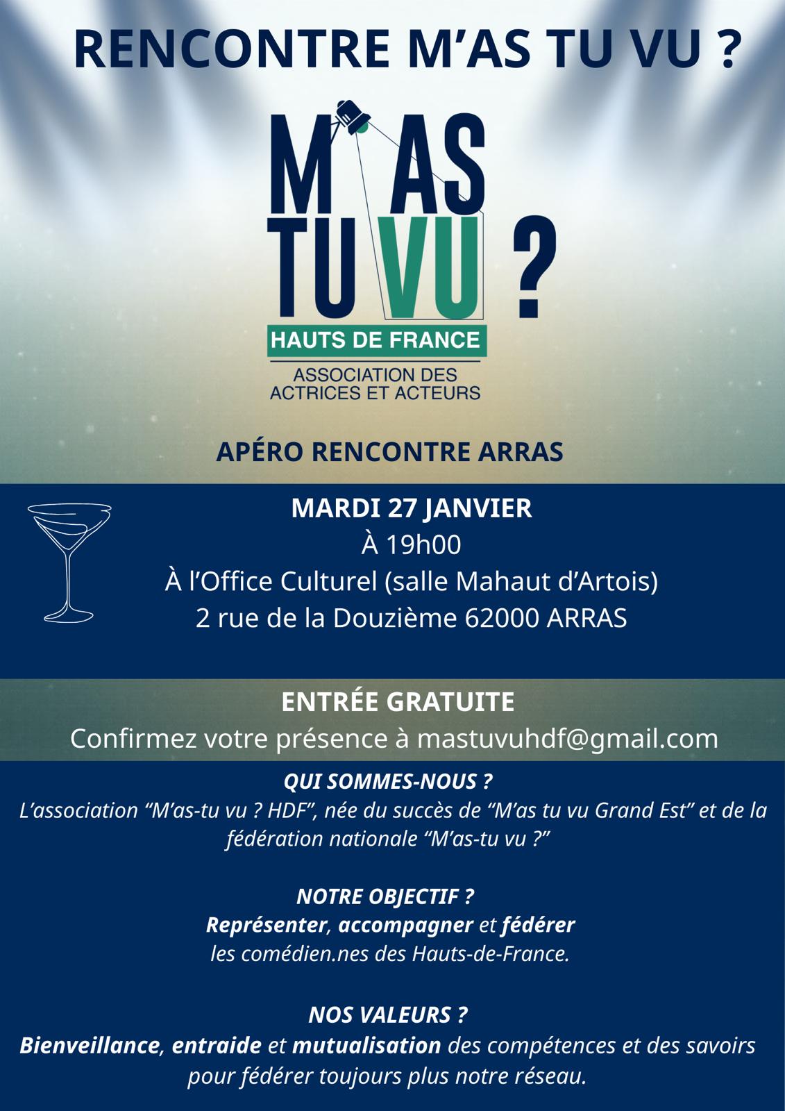Ce 27 janvier à 19h à l’Office culturelle d’Arras : 1er apéro-réseautage entre comédiens, réalisateurs, producteurs du territoire ! (gratuit)